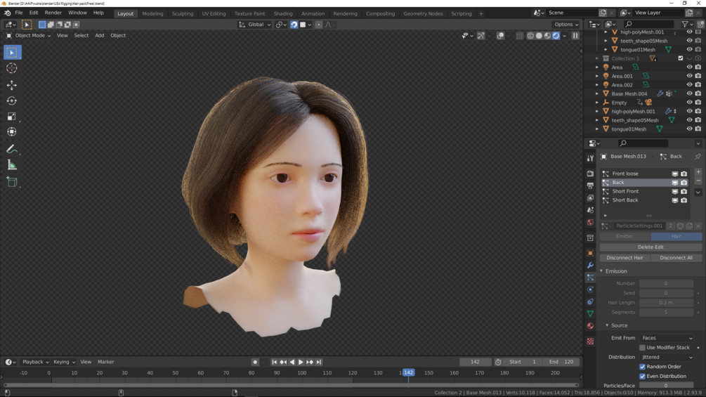 This is the free collection of the hair pack, It includes 3 hairstyles. Hairs are created using hair groom particle system. These hairs can be further modified. You can use these for games (In game engine that supports hair curves) or rendering.